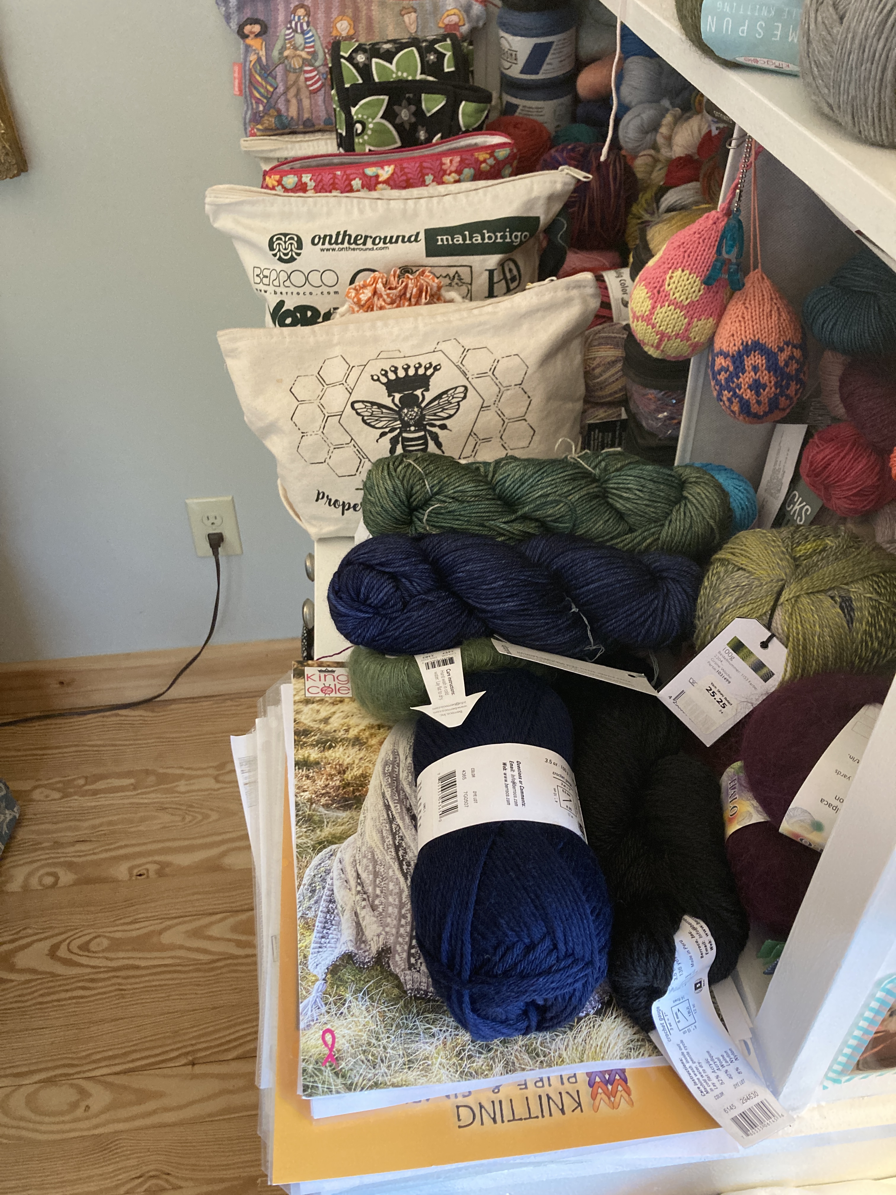 Yesterday was a perfect day! We had nothing on our schedule so we had coffee on the porch in the sunshine, I wrote the store newsletter, hubby made blueberry pancakes for breakfast and we went to Lowe’s to get some supplies for building the little “nook” for our granddaughter’s visit this summer. I spoke to all of our kids and got a chance to knit a little, too, before a lobster dinner (what a treat! The price of lobster is crazy right now.) I took this photo of our first humming birds who have arrived back in Maine for the summer. I love these little birds so much … and pray that their navigation skills as they zip around the house are top notch … when we sit outside we can feel their wings pass by our ears. They’re miraculous.
