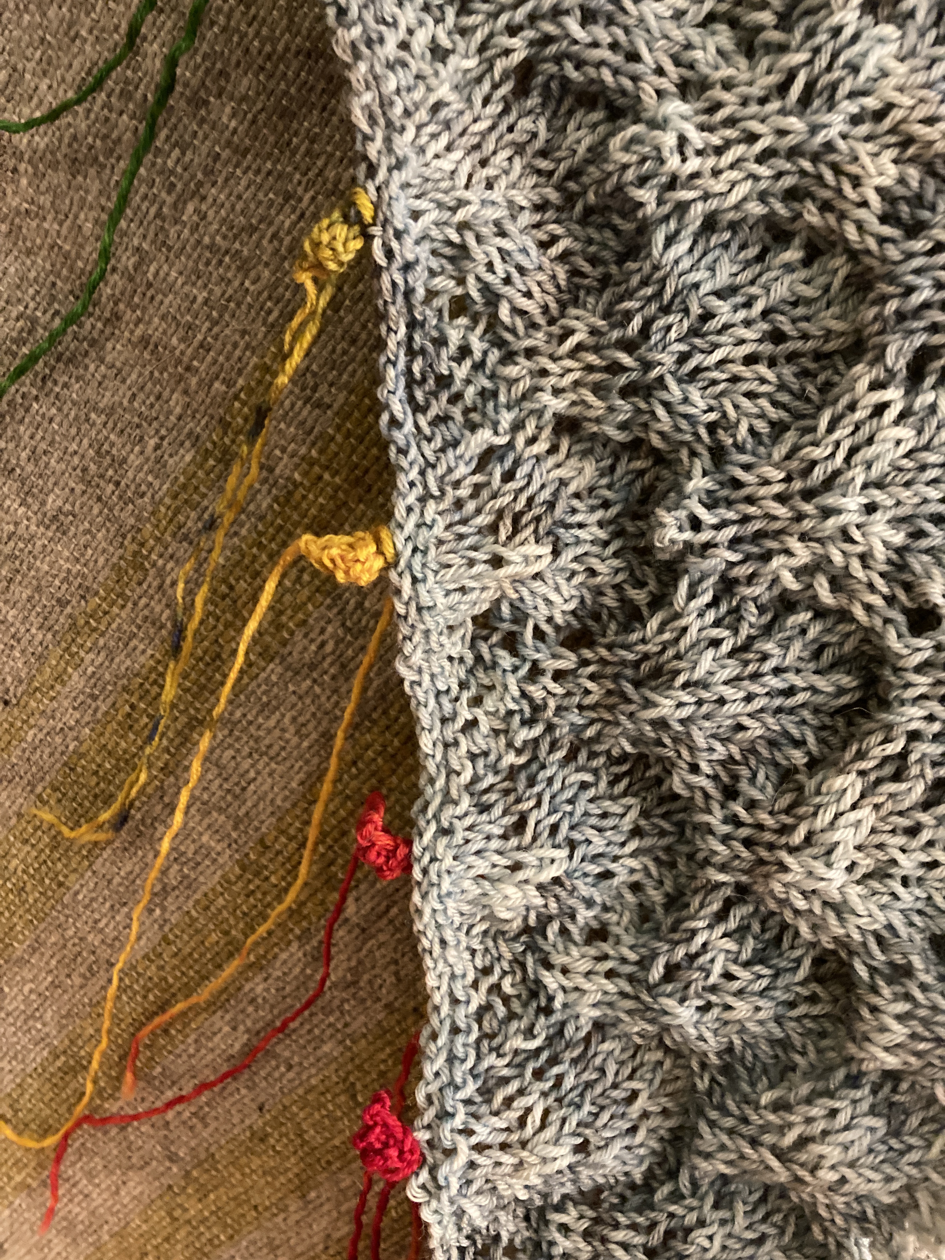 The third project, a mess of knitted fabric in the photo, is intentional because it’s my granddaughter’s 2025 Christmas sweater. I am designing a “simpler” design this year with stashed yarn because I am trying to knit down the stash and I bought this yarn to make her a sweater. The theme is loosely based on the Disney movie Frozen. The yarn is Cascade 128 Superwash wool, and I’ve used two hanks for this sweater. That means I have one more to make a hat … if time allows. I’ve seen a pattern for a hood-type hat with fun fur around the face and that’s what I’d like to make for her for the winter. New York City can feel really cold in the morning on the way to school! Sorry, you’ll have to wait for the photos of the finished project until after it’s delivered.