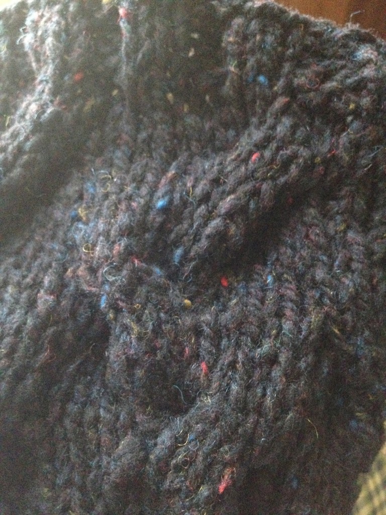 As of last night, I’ve crept up the hat and am nearing the end of the body of the hat. I have enough fabric now to try the hat on and it does fit my head well. I didn’t have a mirror to decide if I love it on but that will happen soon enough. So far, so good.