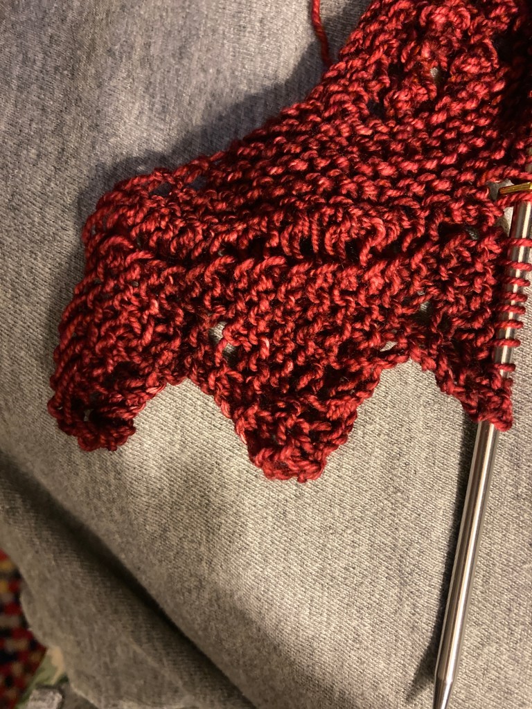 I’ve also been working on my shawl, All About The Ruffles. I’m nearly to the full stitch count on the garter stitch section. I wish I had figured out how dull the garter stitch section would be and skipped this project. I sure hope the ruffle section makes it worth while. the “Harbor” colorway in Emma’s Yarn Practically Perfect Sock is lovely and this year is really lovely to work with. I’ve not taken any pictures because a garter stitch triangle is not very exciting but there will be some coming.