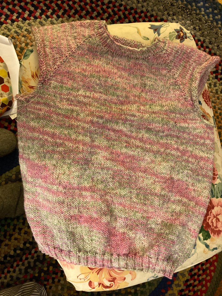 I’m working on my Vanilla Sweater by Corrine at the Wooly Thistle in Rauma Garn Finull. I fell in love with the color of this yarn and had to buy it. No regrets here. This is a wooly Norwegian wool and I can already feel it softening up as I work it. I’m struggling to see my stitches though with the heathery wool and I’ve had to go back several times when I increased where I should not have. My attention span seems to be challenged right now. Lots going on, hubby away, boss away, the world on fire and I may even need a better light by my knitting chair.
