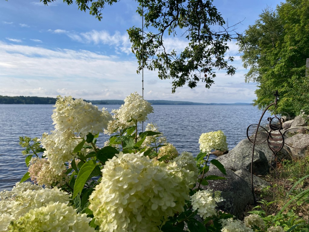 I have had a lovely, peaceful morning with my coffee and yarn on the porch. I got up without an alarm, took the dog out, fed the dog and took my coffee out to the porch. It was pretty gray and we even had a little sprinkle of rain. Since then, I went up to my atelier for my yarn and I’ve been sitting here drinking my coffee and knitting and listening to the sounds of the lake. The sounds of home. Hummingbirds chasing each other away from the feeder, ducks quacking by, the train passing heading south, and the splash of an osprey right in front of our boathouse (coming up with empty talons.) And now the sun is coming out and the bees are buzzing in the cat mint.