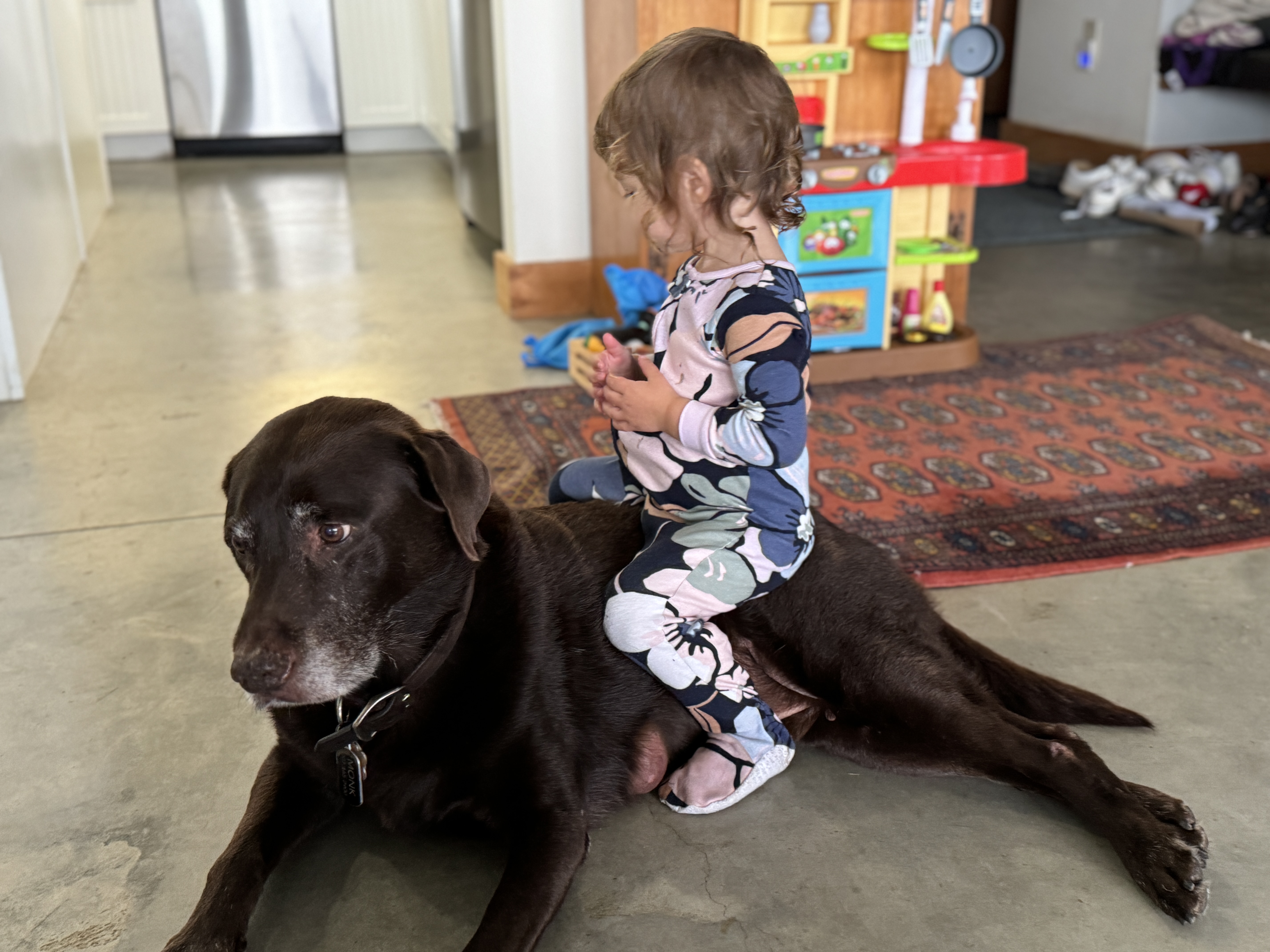 She has started to put together two-word sentences like “Monk, no!” and “Help, please” and she is singing chunks of her favorite songs. For a kiddo with a slight verbal delay, she’s adding new words every day. We had so much fun watching her pretend with her new (to her) kitchen set and we found out that she will eat anything worthy of feeing to ducks – lettuce and frozen peas were a fun snack. Who knew? Otherwise, she always wants pizza, blueberries, milk and “bubbles” (seltzer).