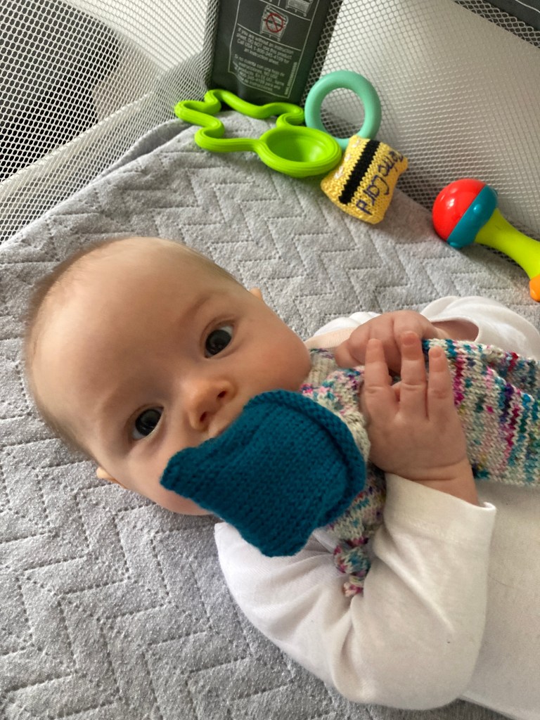 Notice that Sylvie is wearing the Tybe cardigan that I knitted for her in Berroco Vivo (cotton) and it’s a perfect fit right now. I made the 9 month size … she’s a little peanut. But she loves chewing on the vintage buttons that I bought when I was at Knit City Montreal and they remain the perfect buttons! She’s a walker now and it was so much fun to watch her explore.
