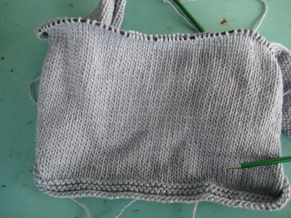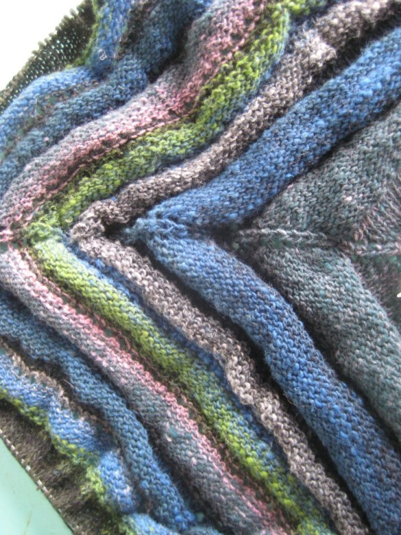 I have my bag with the lace end panels, too, to finish. They’ve really taken a back seat in my knitting bag. Mostly because I have to start working on the lace in relative seclusion. So, next week, when I’m alone at night after work, I will be working on the lace panels. I’ve already knitted and frogged the first panel several times. Maybe the fifth or sixth time will be the charm.