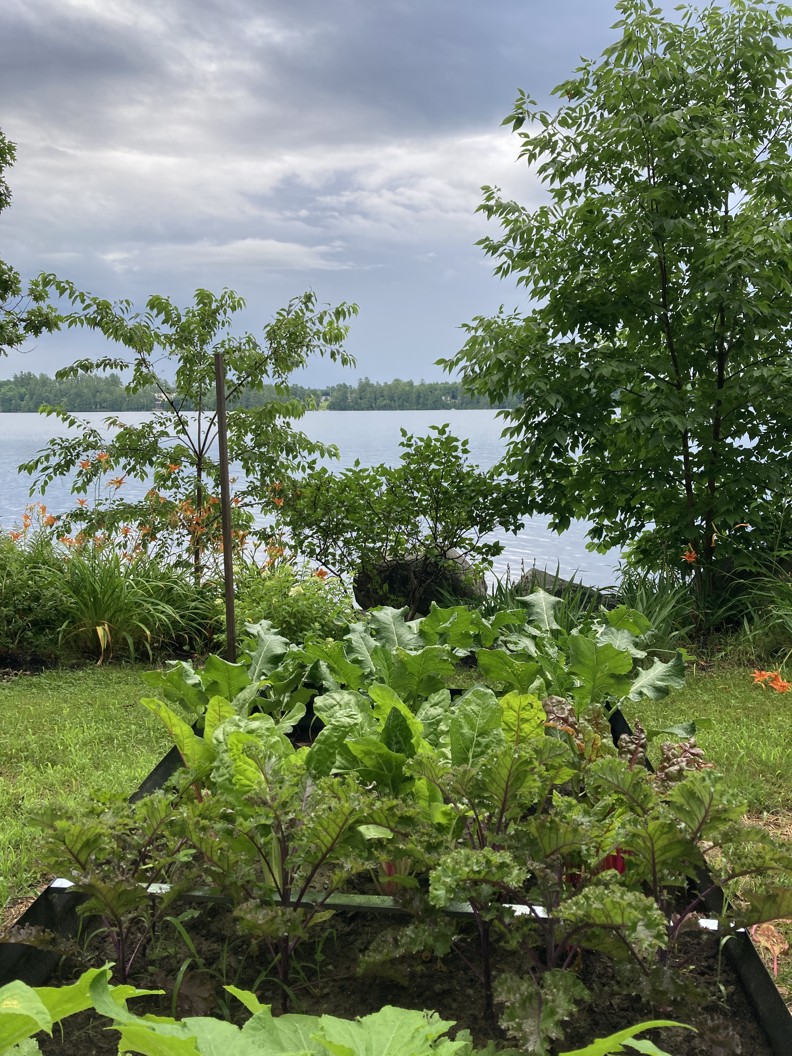 I’ll be honest and tell you that this photo was taken a couple of days ago but it’s still a reflection of our vegetable garden this summer … at least in the new raised bed. We’ve already harvested three summer squash and some Swiss chard and kale all of which are growing really well. The tomatoes in the other big raised bed are not doing as well. We must need to give it some extra nutrients or something because the tomatoes are pretty pathetic. Oh well, we will learn and do better next year.