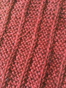 I really like this pattern. The repeat is simple, it’s knit bottom up in one piece (at least mostly in one piece) and I can wear it over my self-imposed work “uniform” which is almost always a pair of slacks and an oversized tunic/blouse. A wool vest will be great … as is the cotton vest (first iteration). I used Ella Rae worsted wool in a deep red colorway (it’s on my Ravelry project page). The color is really closer to the first picture. The second is to show a close-up of the stitch pattern. So close!