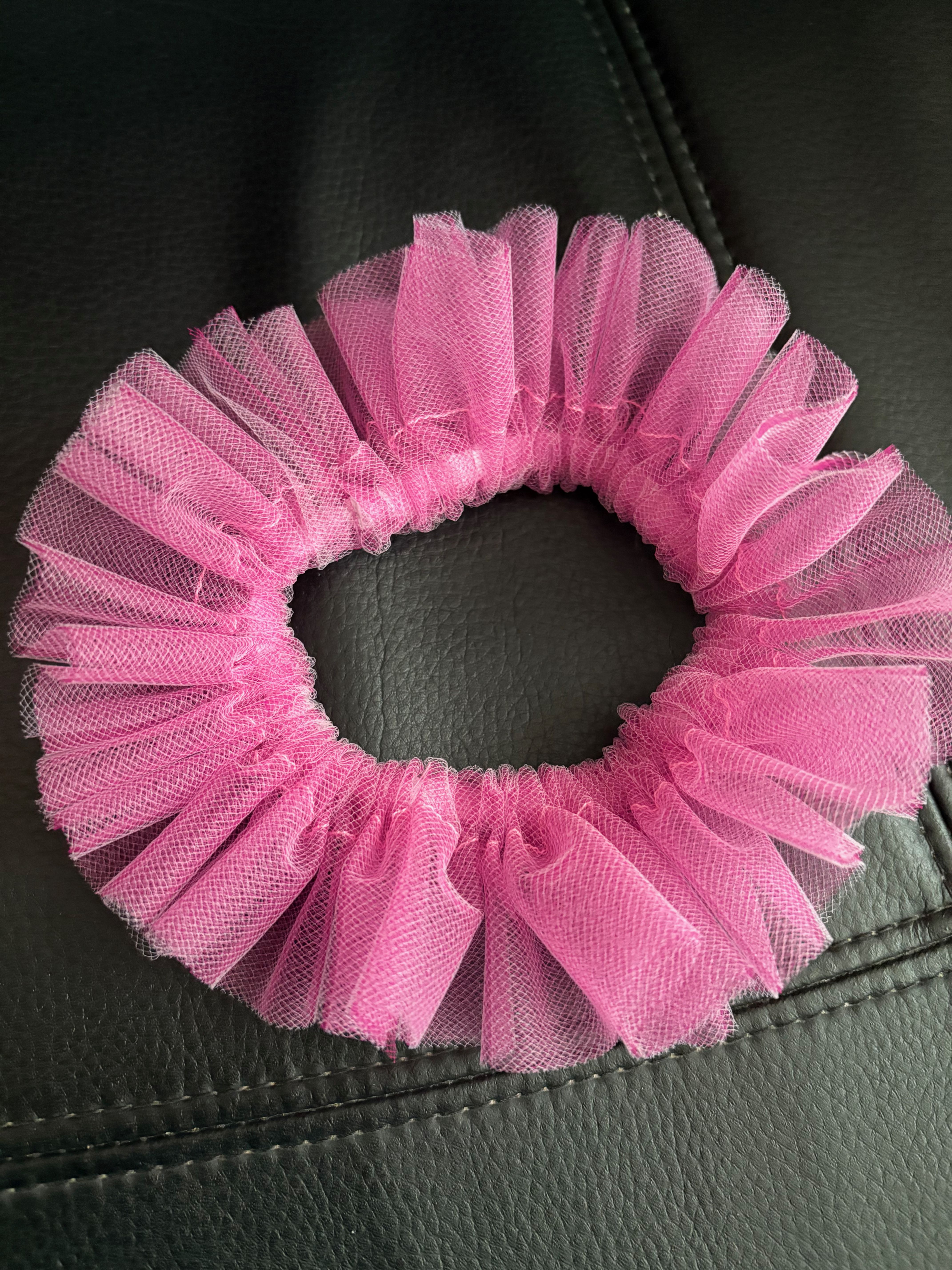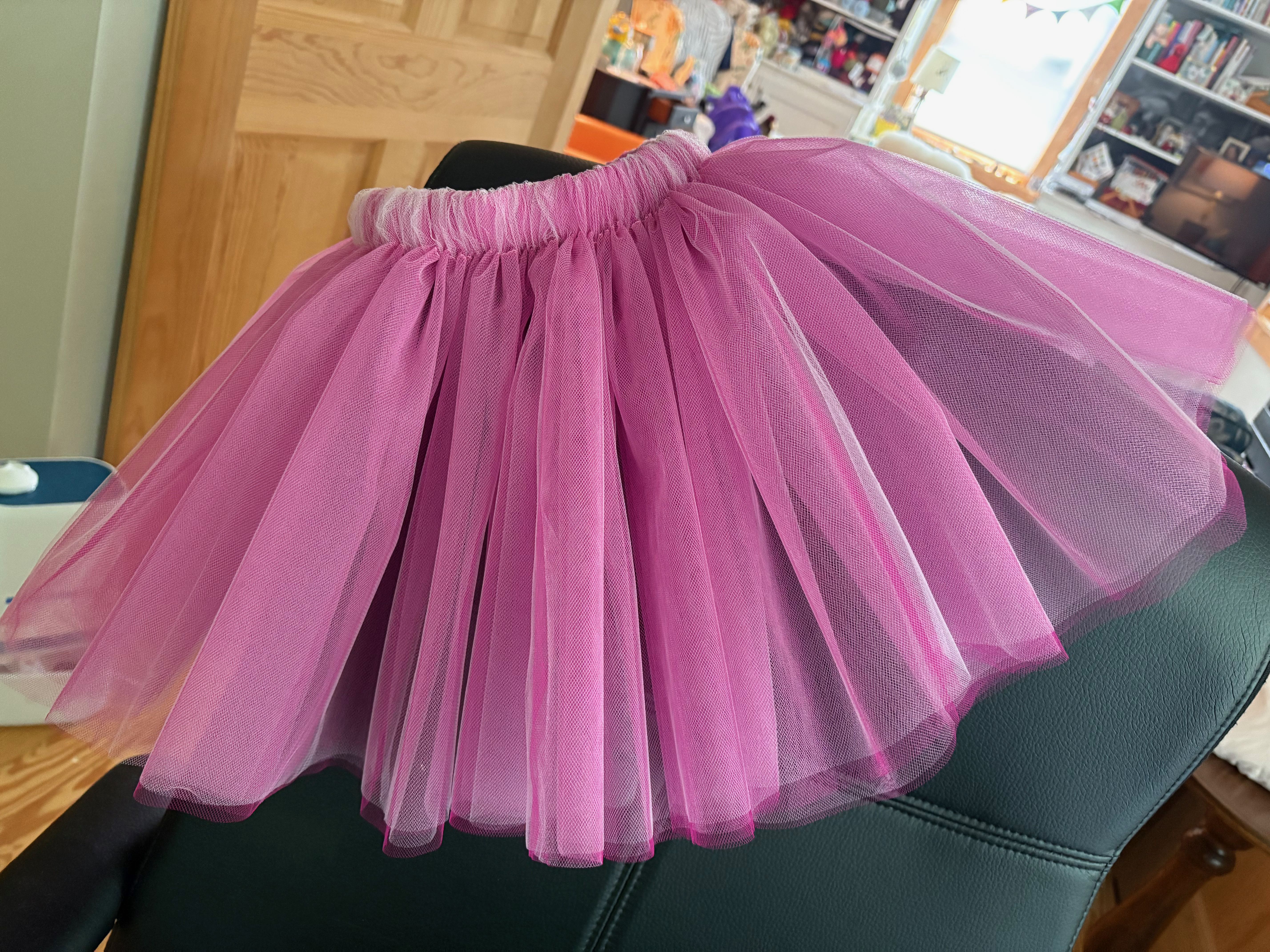 So today I sewed a tutu for my granddaughter and her doll, Baby. I brought home two shades of pink tulle from the store (it’s been around for decades) and I’d already planned to cut it at 24″ and fold it in half and put it on a one inch elastic to go around her waist. Today I did the sewing and the finishing. I hope it’ll fit as I’ve sewn it but I can always take the elastic apart and lengthen of shorten the waist band. It looks pretty good, if I do say so myself. While I was sewing, I made a tiny tutu for Baby, too. I think Sylvie will like putting it on and taking it off of her doll.
