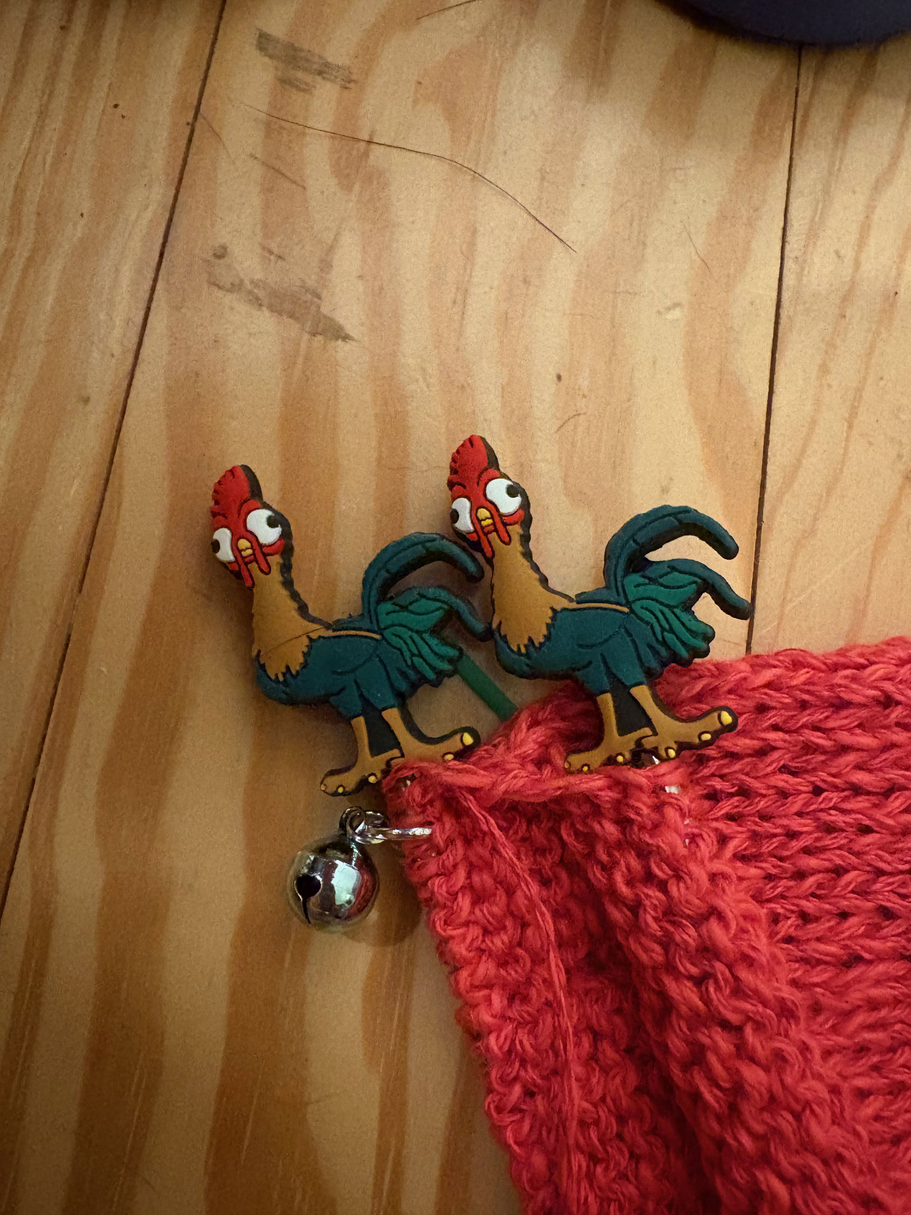 I’ve been knitting like mad trying to finish my “summer” sweaters before summer is done. I’m doing really well with my Ankers Summer Shirt. I’m a few inches away from the bottom ribbing on the body and the sleeves aren’t long so they won’t take much time at all. I’m still loving the color of this top and I can’t wait to wear it with m white pants and a tanned face. I hope the sun will come out eventually this summer. The Hei Hei rooster needle tip protectors sure do make me smile!