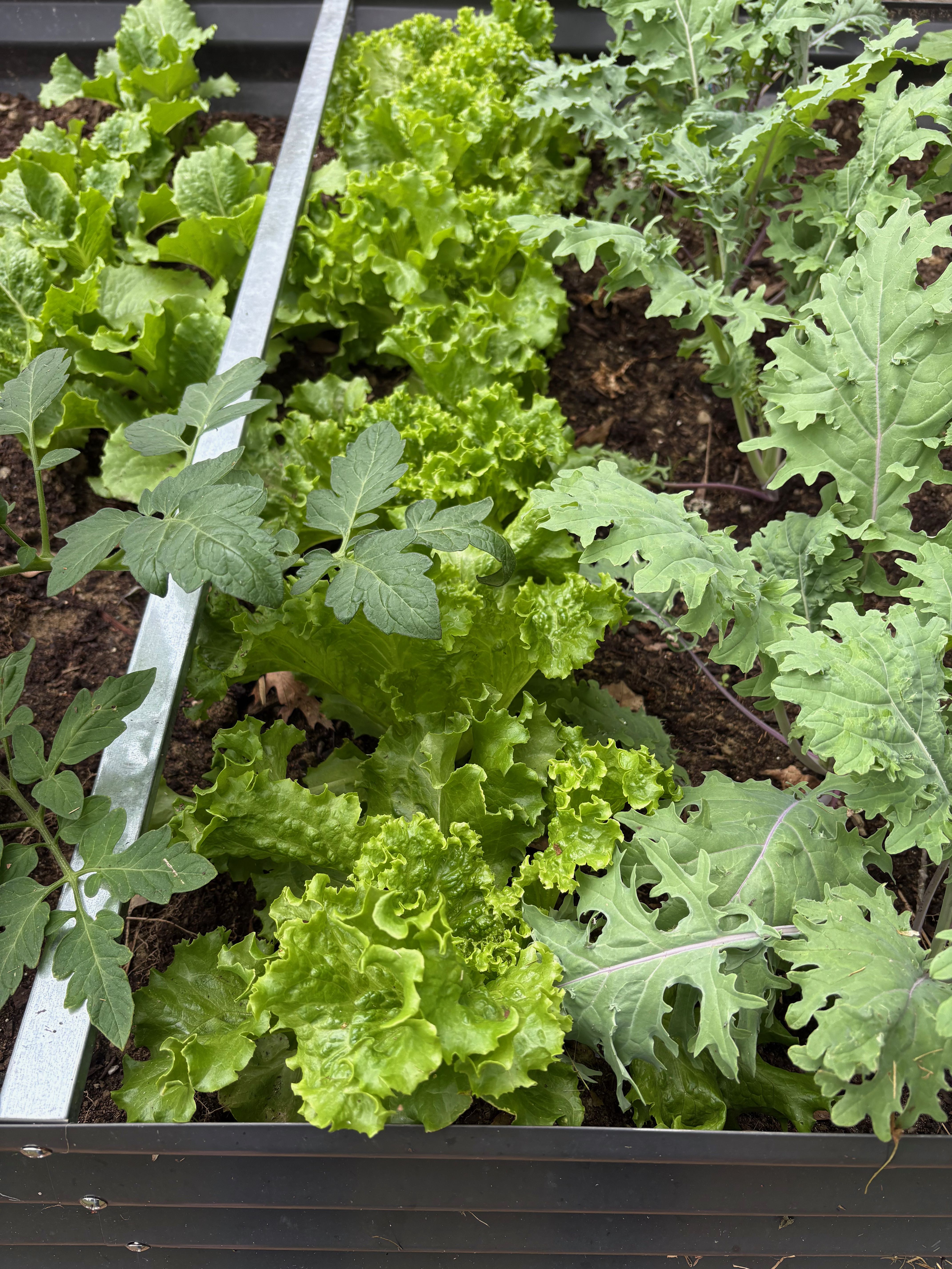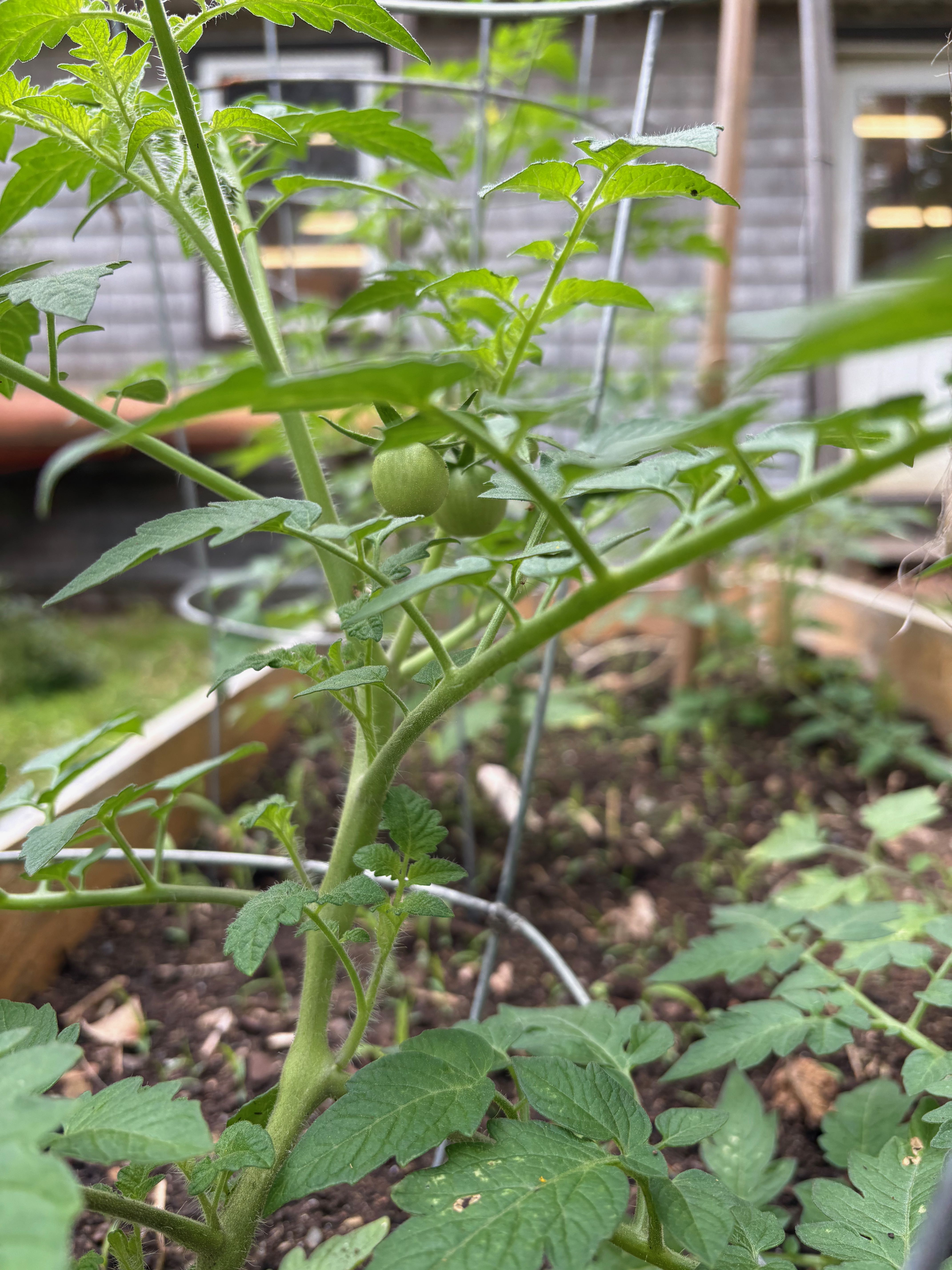 We’ve had a salad with lettuce from the garden this week. My lettuces and kale are growing like crazy and we have a few baby tomatoes on the vines. Yay! The squash plants are getting big (I wonder if I can move them once the garlic is pulled?) The garlic leaves are still pretty green but we’re going to try to pull some when the kids get here. I love growing our own food and am learning a lot about how to get the best yield. This year seems to be a good one so far. Cross your fingers! We harvested about six blueberries from our little bush … our first ever! The birds or critters have always gotten them before.