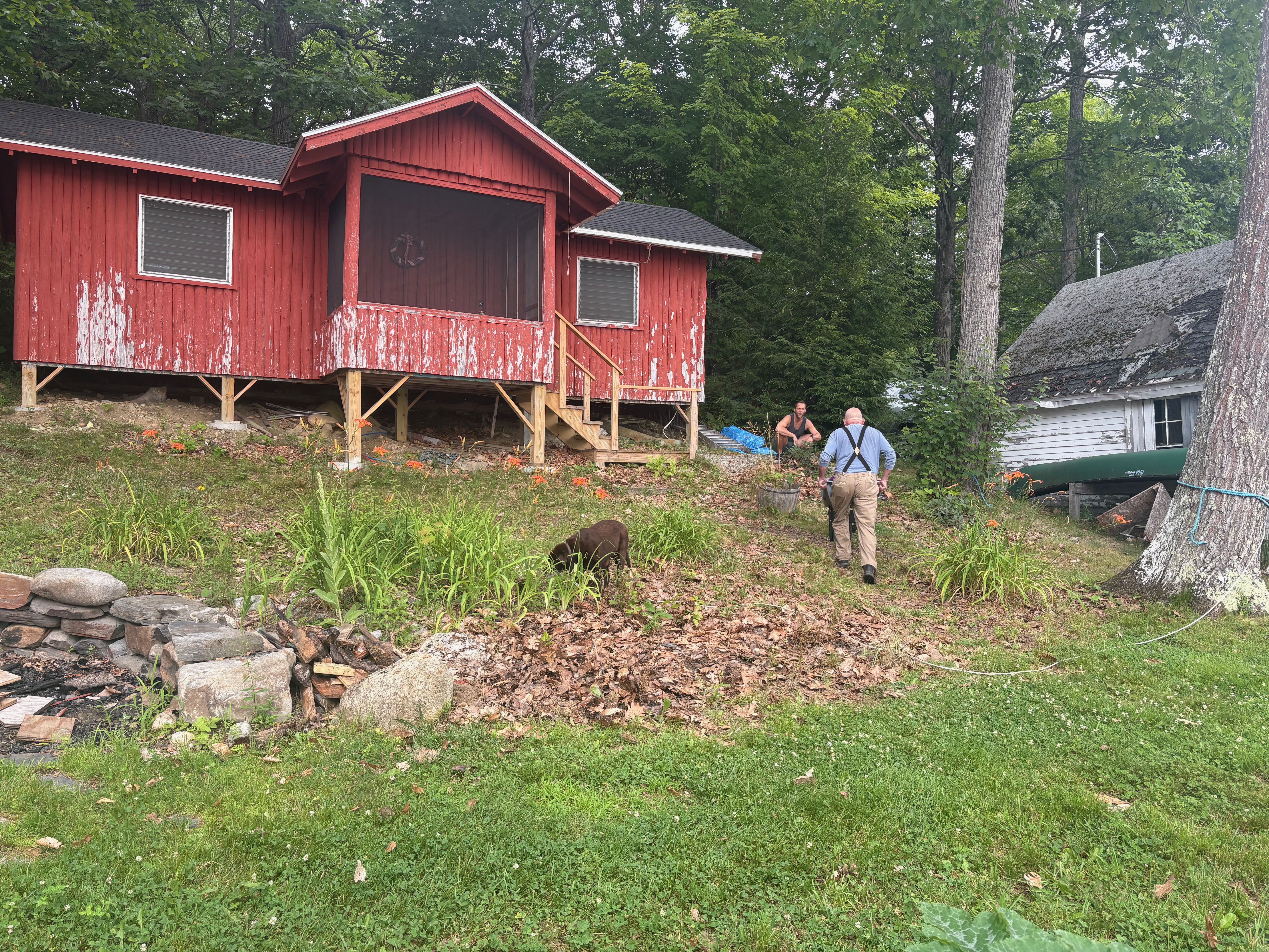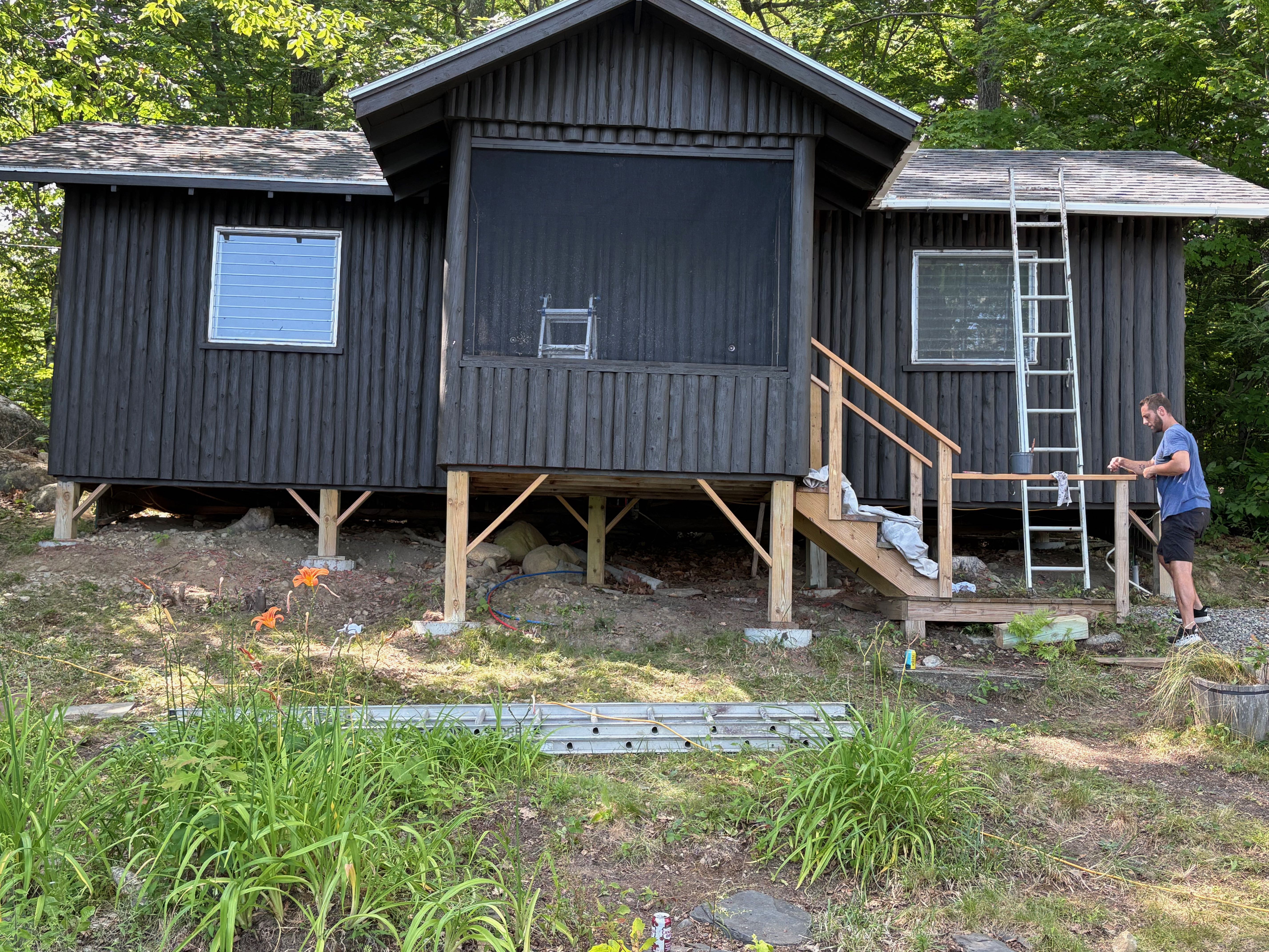 And last but not least, my hubby has been working away to create a gate on the end of our porch to keep little ones, both two-legged and four, safely on the porch. The lake is so close and kids move so quickly, I think this will make it possible for Sylvie to have some freedom this summer when they’re here. She will, of course, be reminded over and over, to stay off the dock and out of the water when she’s not with an adult, too. One can never be too careful around water. Hubby’s guest cottage bathroom project is almost complete, too. The new shower stall is built, the floor is in and the holes in the porch and the porch screens have been repaired. He’s working on the screen door now. Soon, we will get it all cleaned up and buy a bed for it and then it’ll be available for friends and family to use when they come to Maine. I think we’ll be putting it up on AirBnB or one of those apps next year as a weekend rental. See how it goes.